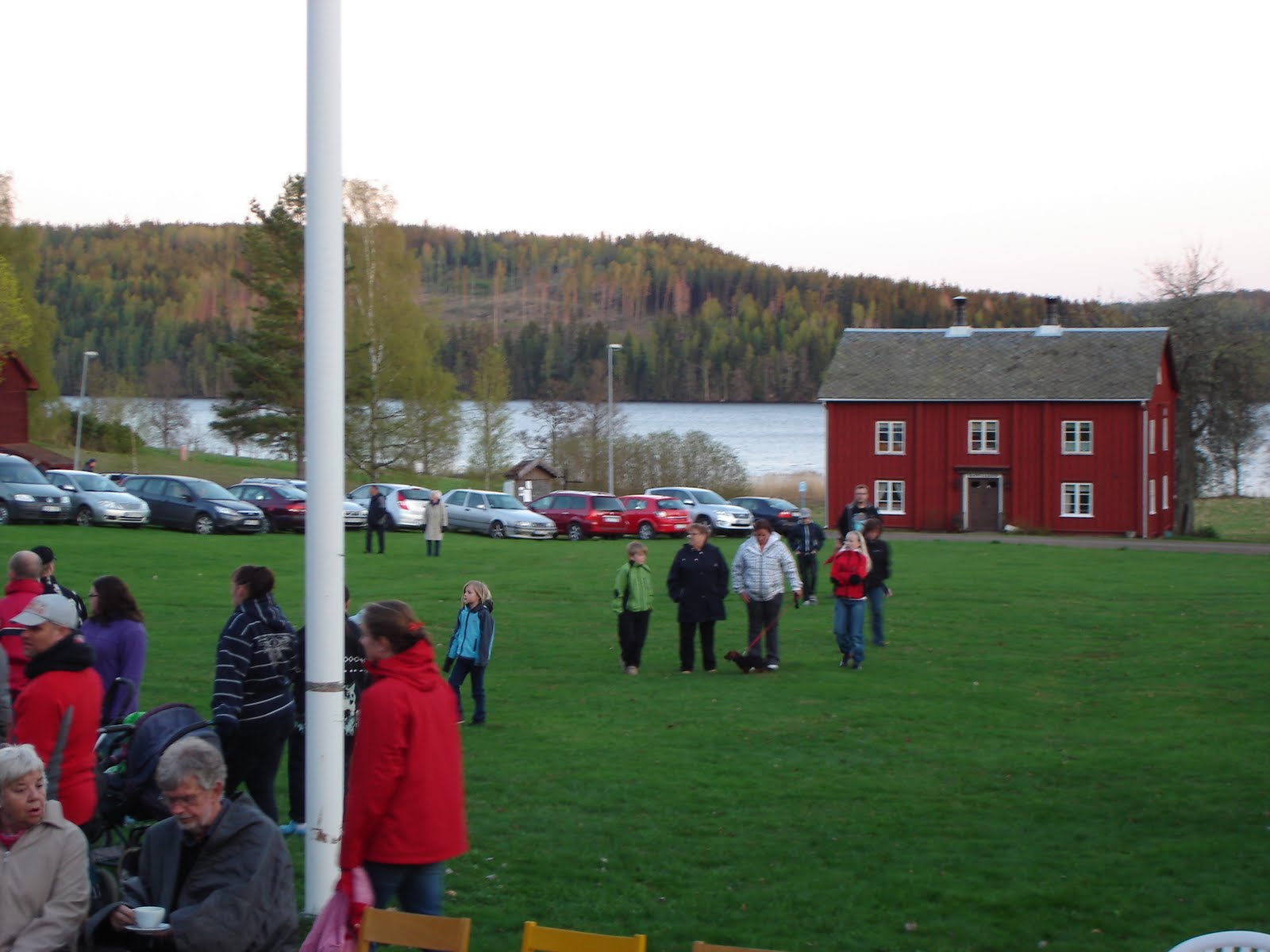 Zo heet het feest om de komst van de lente in Zweden te vieren, en dit was onze eerste keer! Er wordt een groot vuur gemaakt op veel plaatsen in het land,dit was oorspronkelijk bedoeld om de kwade geesten te verdrijven, zodat de boeren het vee vanaf 1 mei weer veilig de wei in konden sturen. Onze 'Walpurgisnacht' vond plaats in de Hembygdsgård van Molkom, een soort klein openluchtmuseum met een paar typische huizen en gebouwen van de streek, in Zweden vind je dat bijna in elke plaats. Vanaf 20.30 was er koffie en broodjes, er kon kunst bekeken worden, om 21.00 ging er een koor zingen, daarna een kinderkoor met dierenimitaties, en daarna ging de fik in de berg takken die op het terrein stond. We zagen nog een bed en ander meubilair tussen de takken, ach, als je toch bezig bent... Er waren Thaise lampionnen te koop om de lucht in te laten gaan, heel feestelijk (normaal wordt er vuurwerk afgestoken). Het vuur was lekker om bij te staan('t is 's avonds best fris nog) en iedereen had het gezellig!